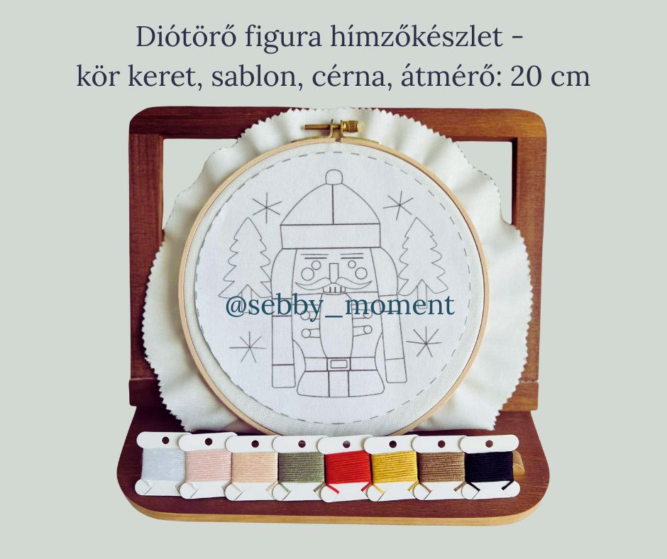 Hímzőkészlet Diótörő figurával – természetes, kézműves stílusban.